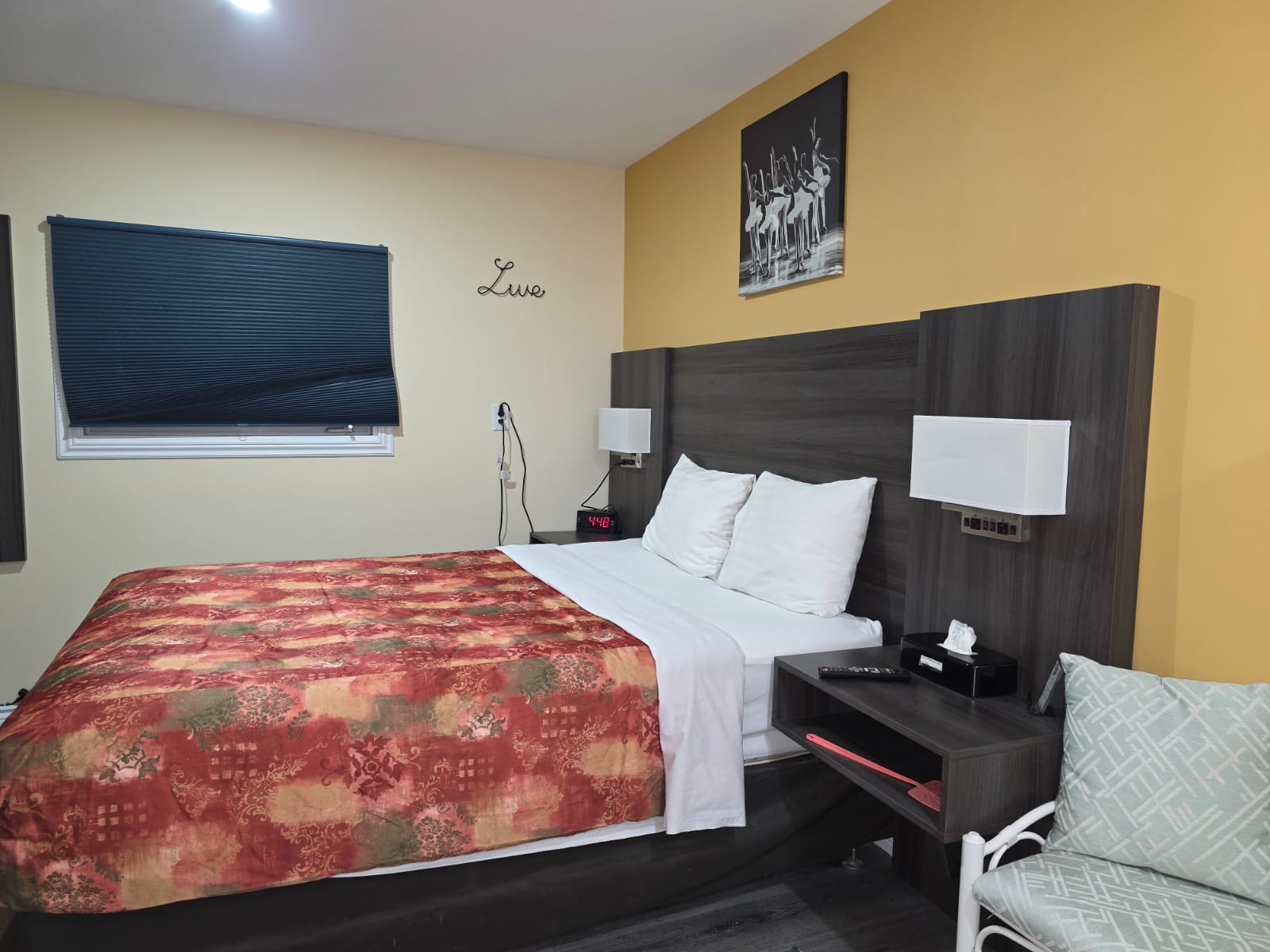 The Single Queen Kitchenette Room is perfect for solo travelers or couples seeking comfort with added convenience. It features a cozy queen-size bed and a private kitchenette equipped for preparing light meals, making it ideal for both short and extended stays. Modern furnishings and essential amenities ensure a comfortable and relaxing experience.